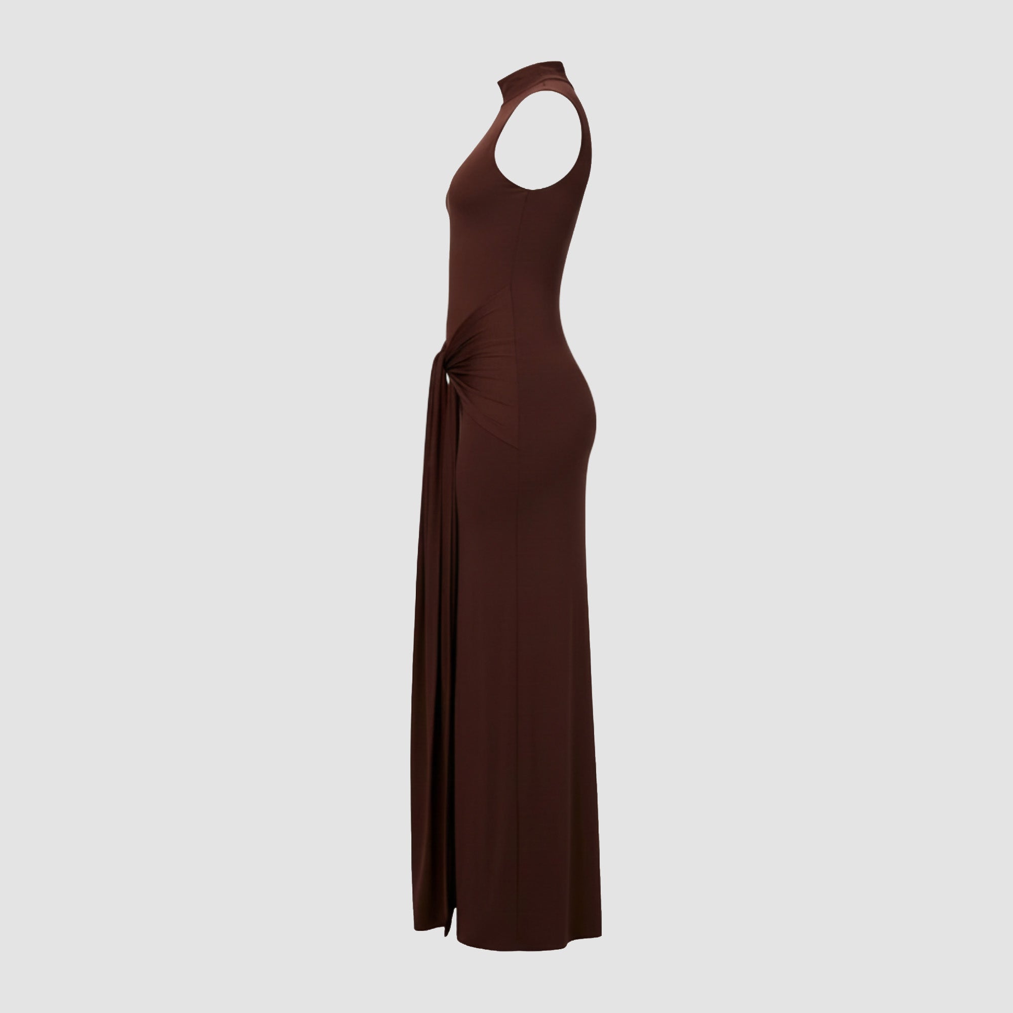 A Sleeveless Mock Neck Knot Front Maxi Dress